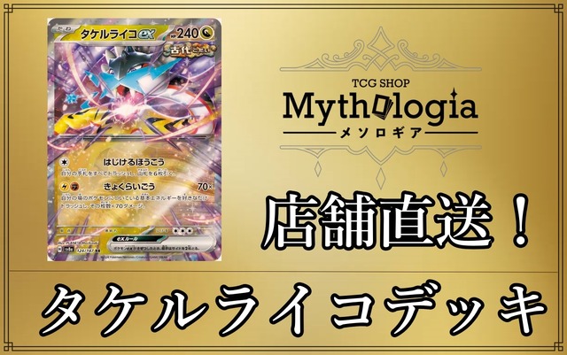 商品名:タケルライコexデッキ 千葉県我孫子駅徒歩1分に位置するTCGショップ「メソロギア」より、「タケルライコデッキ」を販売いたします! このデッキは、タケルライコexとオーガポンみどりのめんを主軸にしたデッキ構成となります。現環境(Gレギュレーション)で対戦に必要なカードが揃っています。初心者から上級者まで、幅広い方にご活用いただける内容です! ★★以下必読★★ 【連絡&注意事項】 ・発送後のキャンセル、返金は、すり替え等の防止の為、出来ませんので、ご了承下さい。 ・カードの状態に関して、別途記載がない場合、比較的良いものを封入しておりますが、中には細かな傷等のあるカードも封入されている場合もございます。完美品ではございません。 また、神経質な方のご購入はお勧め致しません。中古であることをご了承の上ご購入をお願いします。 ・同一カード内でレアリティや品番が異なる場合がございます。 ・発送後の事故やトラブルは保証できませんのでご了承下さい。 【最後に】 定期的にフォロー頂いている方向けに企画も用意していきます。 是非高評価お願いいたしますm(_ _)m