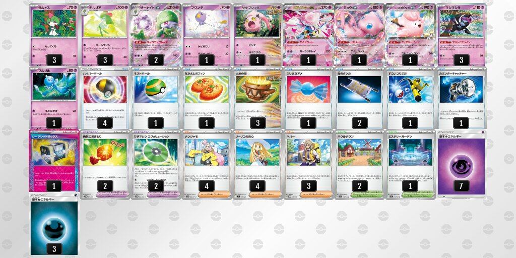 このデッキは、サーナイトexを主軸にしたデッキ構成となります。現環境(Gレギュレーション)でそのまま対戦に使える内容になっており、初心者から上級者まで幅広くお楽しみいただけます。